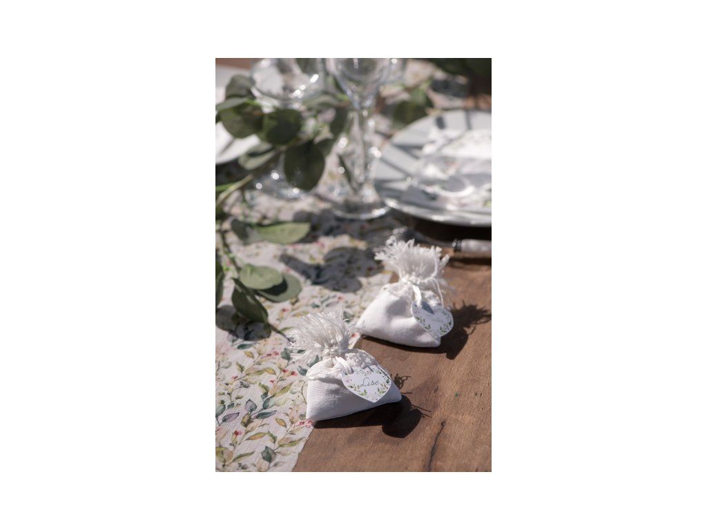 Odpinany bawełniany woreczek, można go wykorzystać jako ozdobę lub woreczek na prezent.