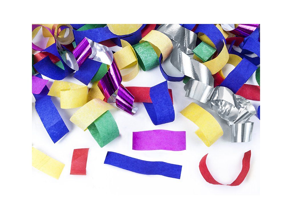 Wystrzałowe konfetti i serpentyny - kolorowy mix 60 cm