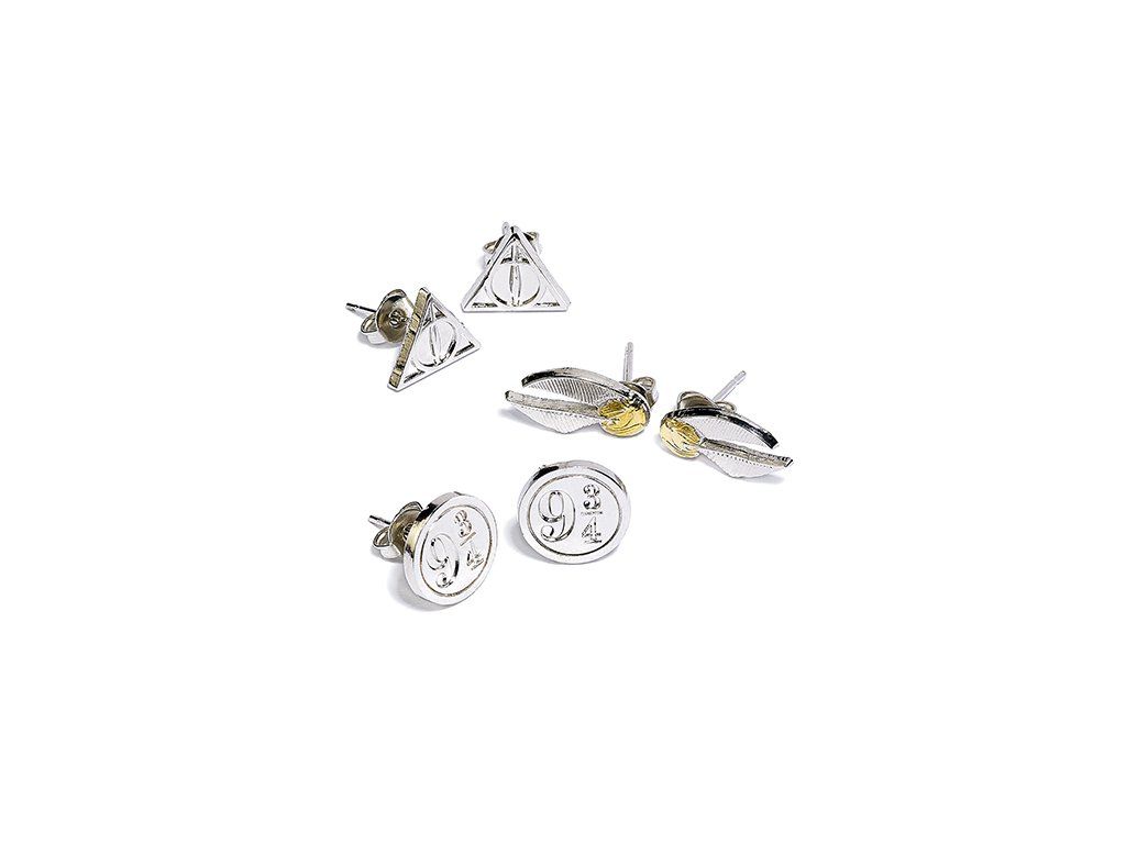 zestaw obejmuje: 1 parę kolczyków – Złoty Znicz, 1 parę kolczyków – insygnia śmierci, parę kolczyków – peron 9 3/4