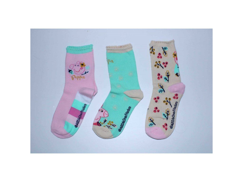Zestaw 3 par skarpetek dziecięcych - Świnka Peppa zielony mix