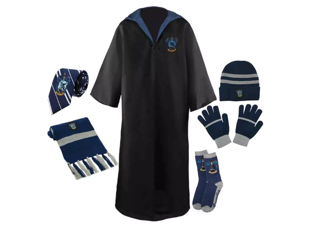 Dzięki zestawowi domu Ravenclaw z Harry'ego Pottera stajesz się prawdziwym czarodziejem! Zestaw zawiera replikę peleryny, krawatu, szalika, czapki, rękawiczek i skarpetek. Zawiera więc wszystko, co potrzebne do rozpoczęcia czarodziejskiego życia w Hogwarcie w w domu Ravenclaw.