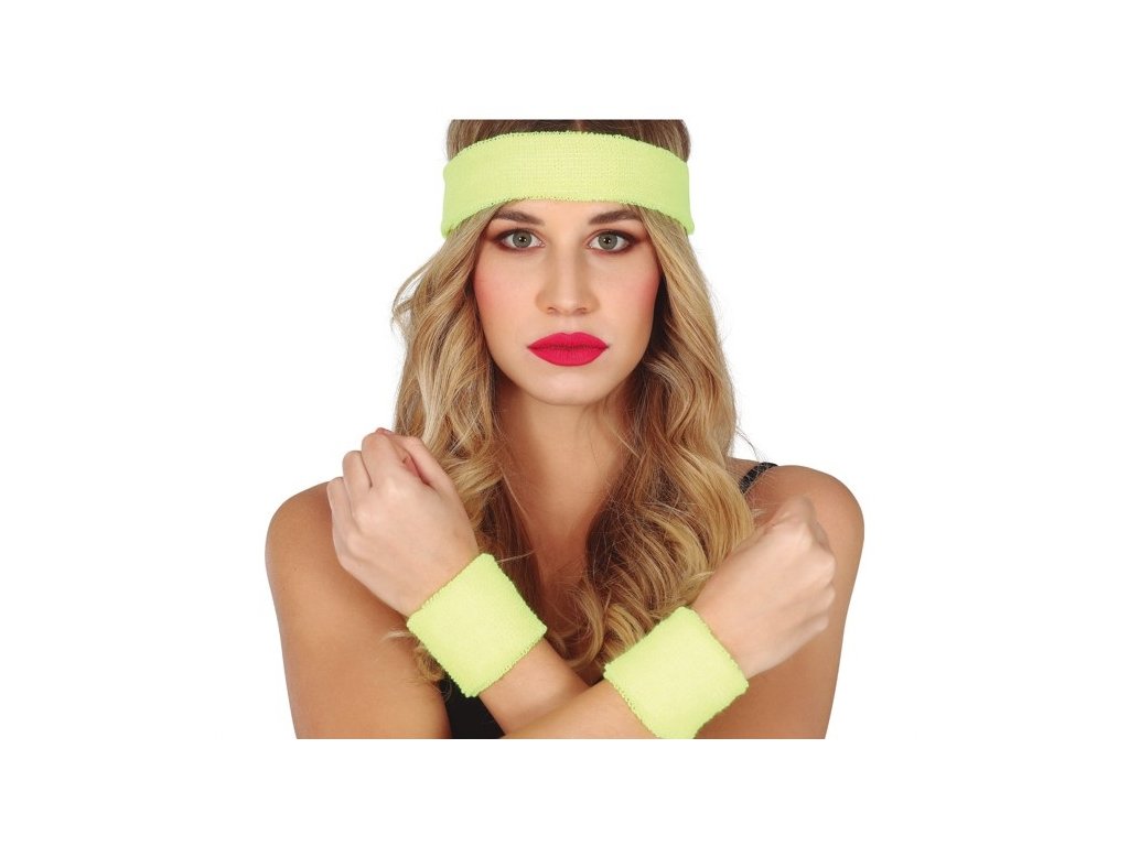 Zestaw frotka na nadgarstek i opaska - neonowożółty