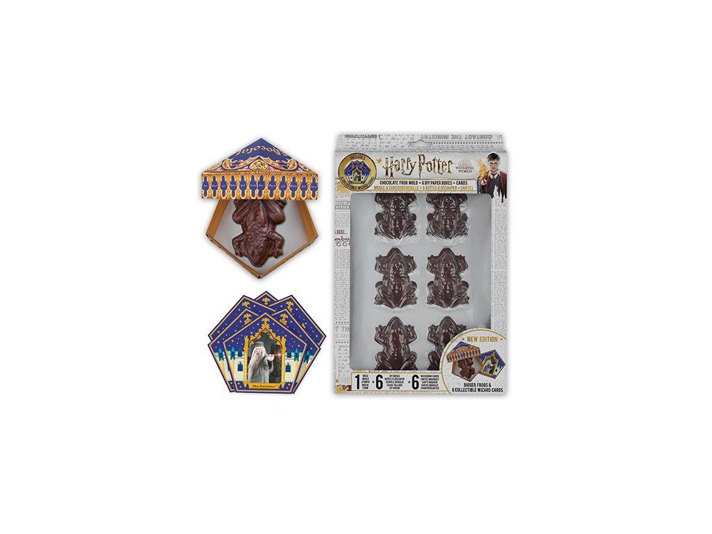 Zbierz wszystkie karty i stwórz magiczną rodzinę! Figurki żab to oficjalna replika żab z filmu Harry Potter. Będą idealne na każdą imprezę z motywem Harrego Pottera, Halloween, czy na filmowy maraton Harrego Pottera. Możesz stworzyć czekoladowe żaby w jakichkolwiek smakach, a także w klasycznej wersji czekolady „mugoli".