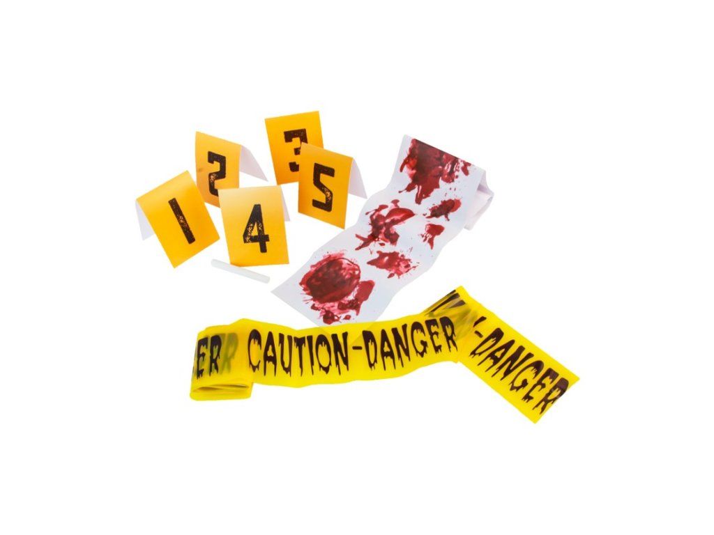 - zawartość: kartoniki z numerami 1 - 5, 1 x taśma "Caution - Danger", 1 x taśma z krwawymi śladami