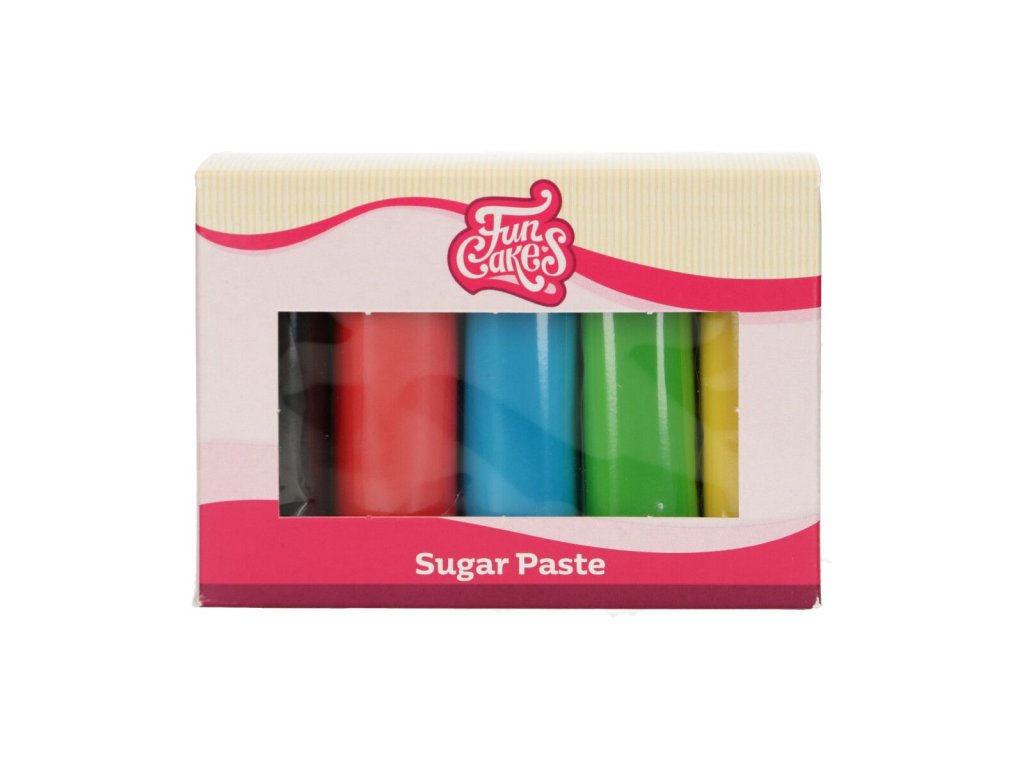 Zestaw podstawowych kolorowych mas do powlekania i modelowania składający się z masy cukrowej w kolorze: czarnym, czerwonym, żółtym i niebieskim. Ich struktura sprawia, że idealnie sprawdzają się do powlekania tortów i ciast, ale także do modelowania różnych kształów i dekoracji, figurek, listków, płatków, kwiatków, a przy tym do ozdabiania cake pops, muffinek i cupcakes. Jest odpowiedni dla każdego początkującego i profesjonalnego cukiernika. Produkt nie zawiera glutenu, jest odpowiedni dla wegan i wegetarian.